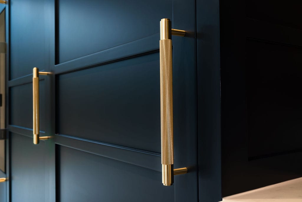When it comes to creating an elegant and luxurious kitchen, it really is the small things that make all the difference. Completing your cabinets with stylish handles in a gorgeous finish will undoubtedly elevate your interior. A warm yellow or rose gold contrasts beautifully against a deep cabinet colour. Aligning the edges of these stunning knurled bar handles with the door panelling takes this design to the next level.