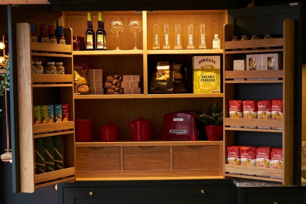 One luxurious design detail that will undoubtedly fill you with joy with every use is a magnificent bespoke pantry cupboard. While internal lighting will make the contents of your pantry and its beautiful oak shelves glow like treasure, there’s simply nothing more satisfying than being able to find everything you need in one perfectly organised place.